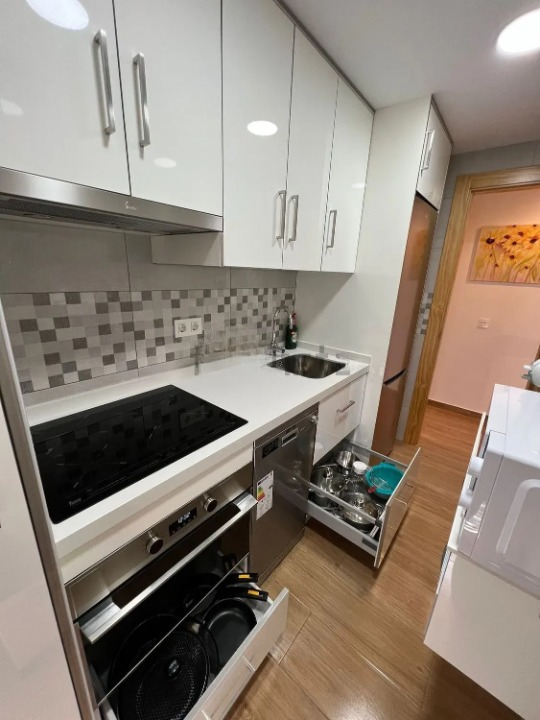 La cocina independiente está completamente equipada con todos los electrodomésticos necesarios, como lavavajillas, horno, microondas y más, lo que hace que la vida diaria sea cómoda y práctica. Además, el apartamento está preparado para que puedas mudarte sin preocupaciones, ya que se entrega totalmente amueblado.